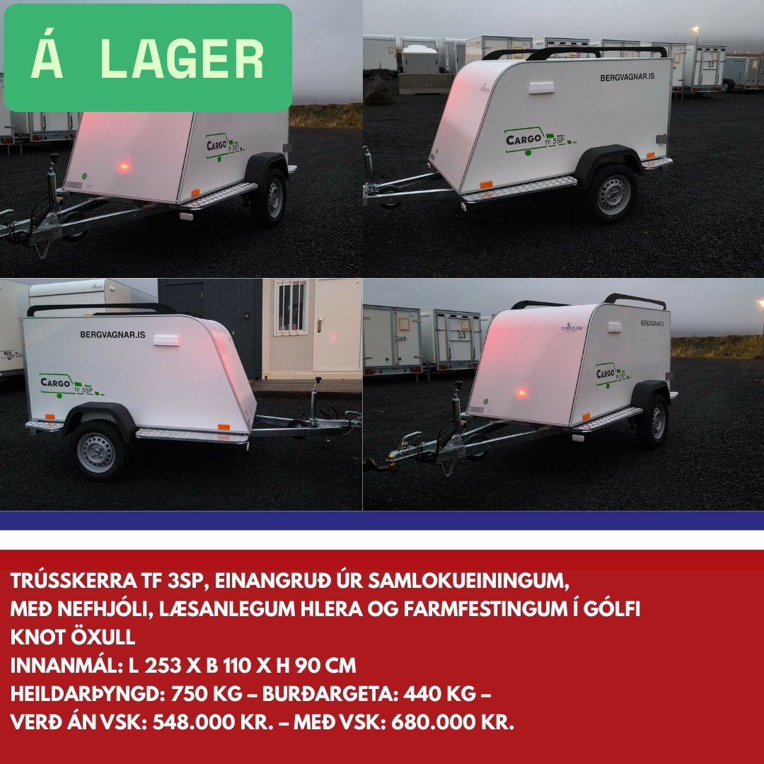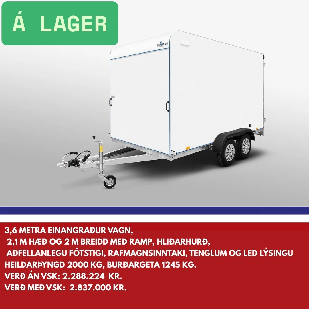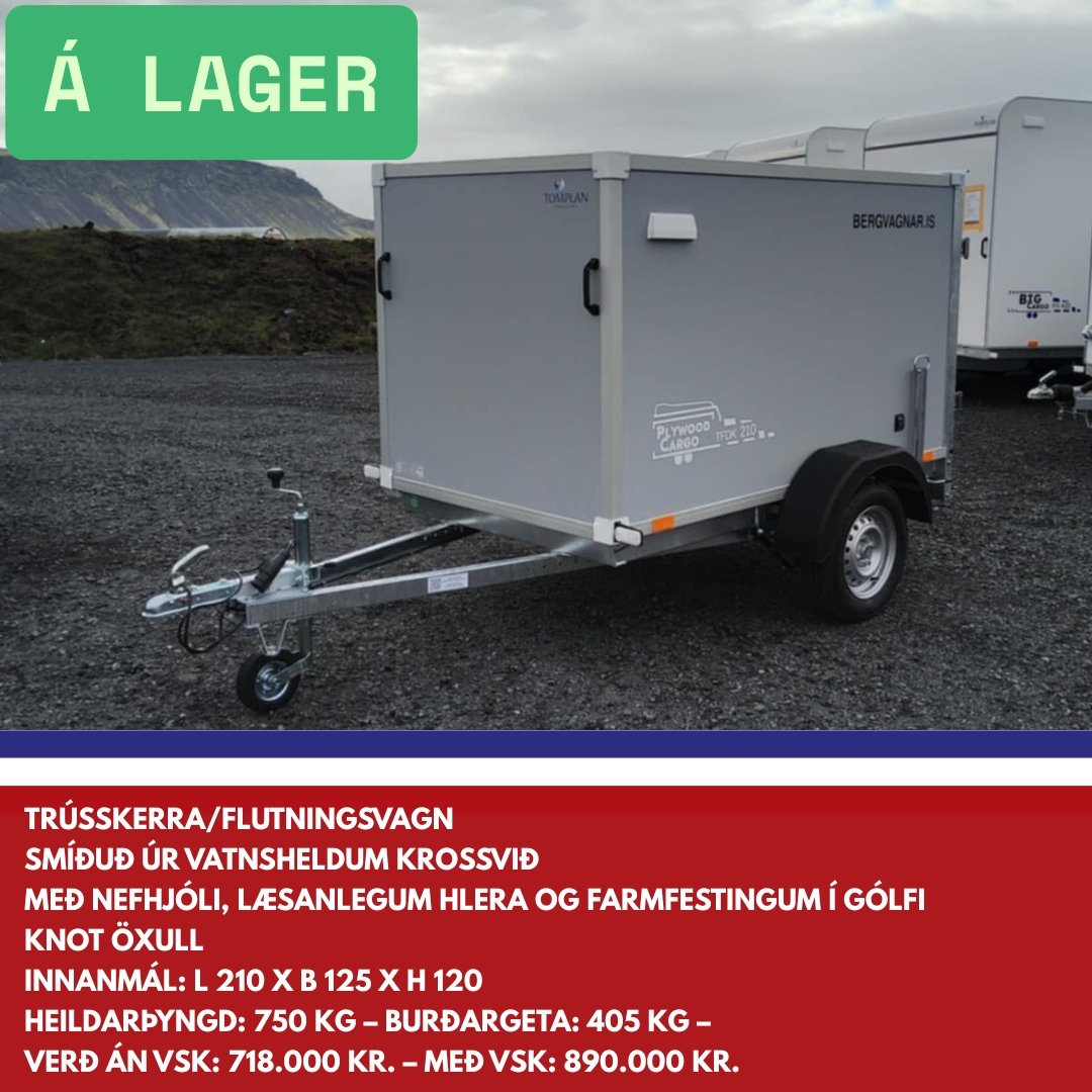 Bergvagnar er umboðsaðili fyrir Tomplan á Íslandi. Við sérhæfum okkur í sölu á lokuðum kerrum og bjóðum upp á fjölbreyttar útfærslur og sérsmíði þegar kemur að yfirbyggðum og einangruðum kerrum. Við bjóðum m.a. bílkerra, yfirbyggðar kerrur, lokaðar kerrur, einangraðar kerrur, fjölnota kerra, farangurskerra, trússkerra, boxkerra, buggybílakerra, bílaflutningakerra, fjórhjólakerra og verkstæðisvagn.