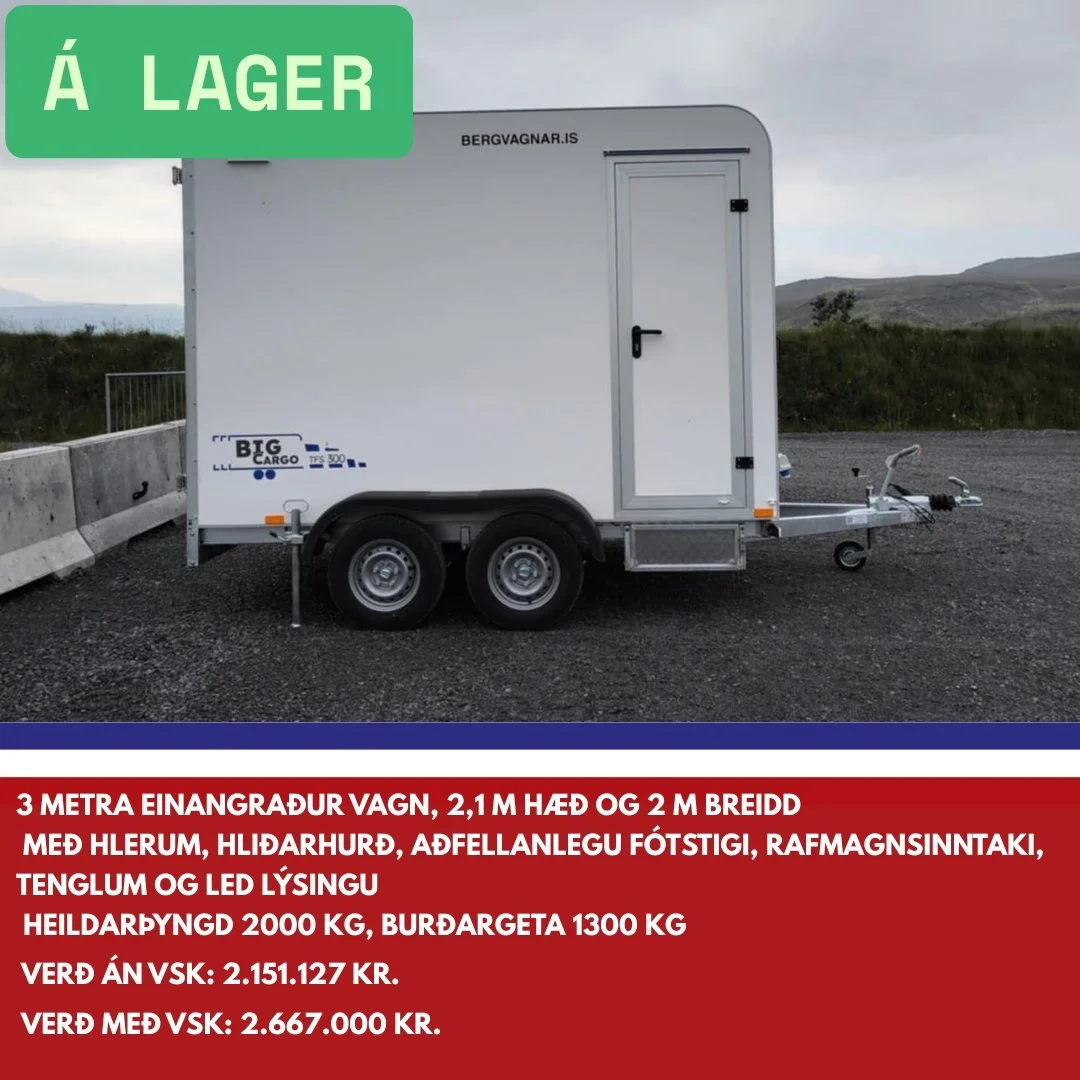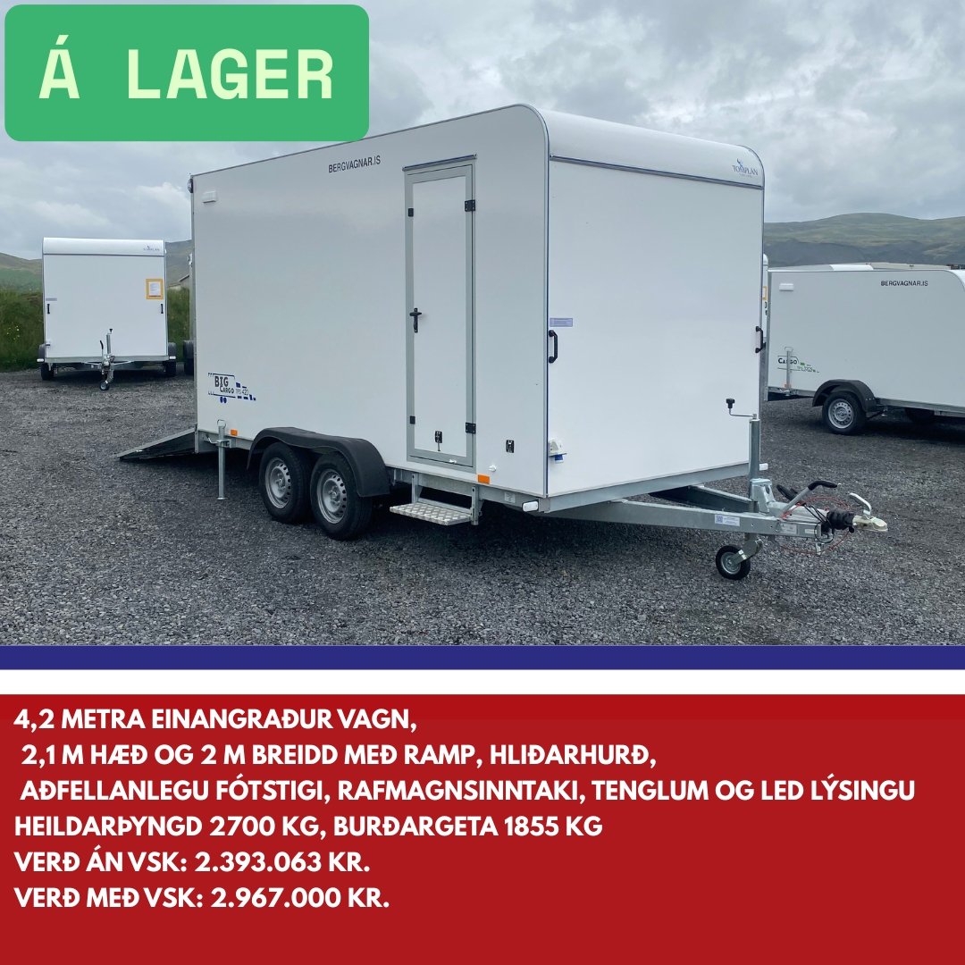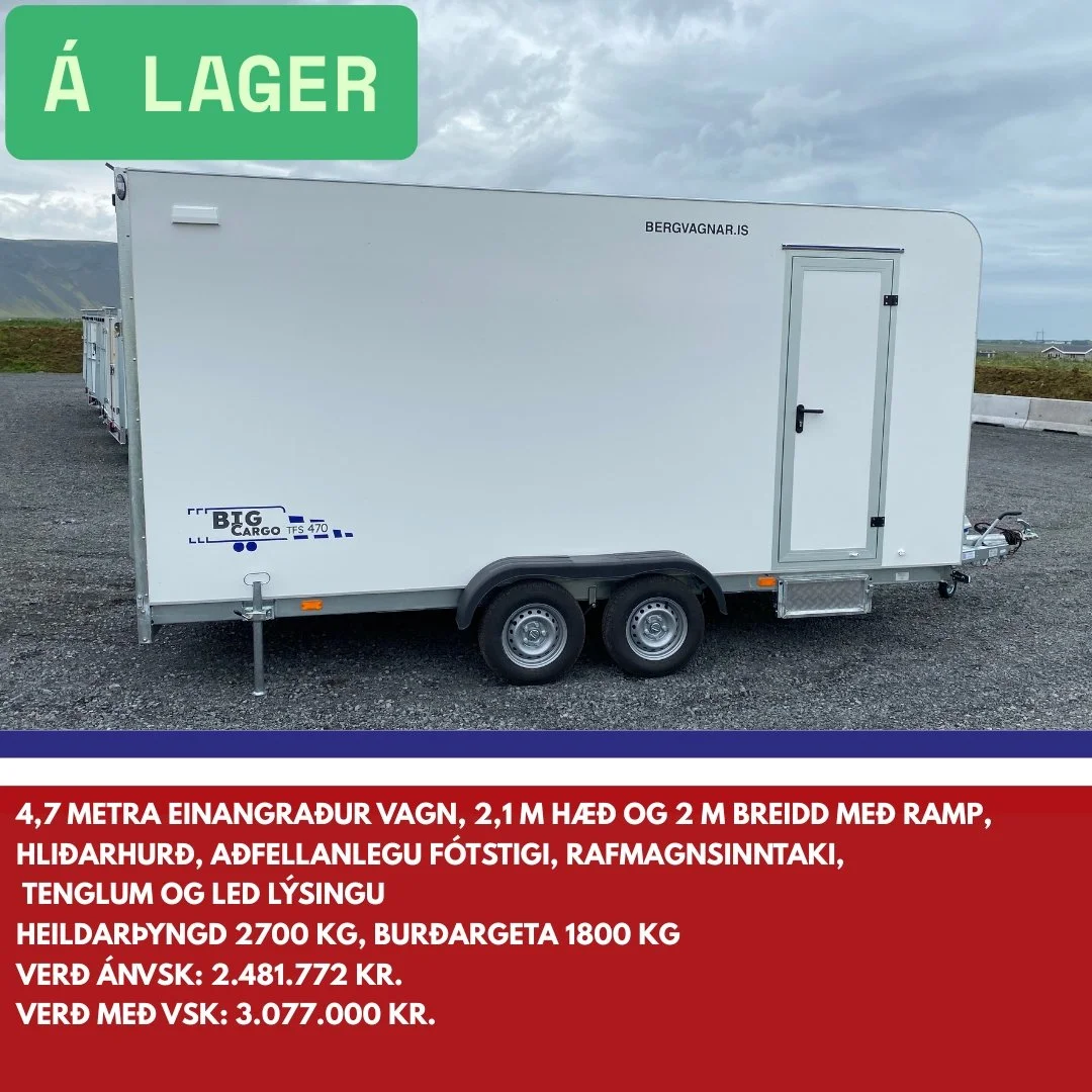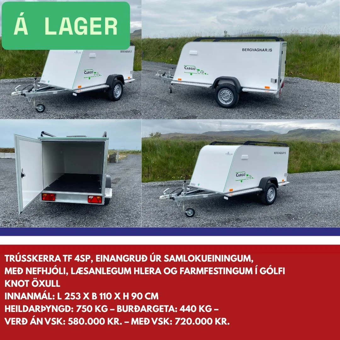 Bergvagnar er umboðsaðili fyrir Tomplan á Íslandi. Við sérhæfum okkur í sölu á lokuðum kerrum og bjóðum upp á fjölbreyttar útfærslur og sérsmíði þegar kemur að yfirbyggðum og einangruðum kerrum. Við bjóðum m.a. bílkerra, yfirbyggðar kerrur, lokaðar kerrur, einangraðar kerrur, fjölnota kerra, farangurskerra, trússkerra, boxkerra, buggybílakerra, bílaflutningakerra, fjórhjólakerra og verkstæðisvagn.
