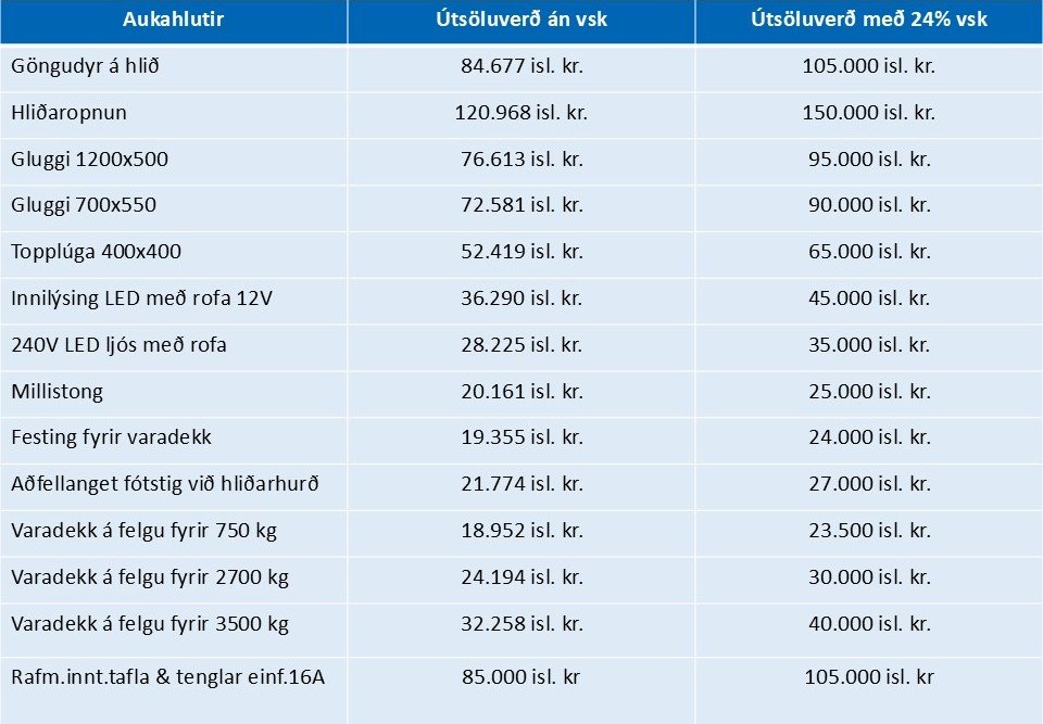 TFS 600 Innanmál (L × B × H): 600 × 200 × 220 cm Eigin þyngd: 1100 kg Heildarburðargeta: 2.000–3.500 kgGrunnverð með hlerum:Án vsk: 2.524.000 kr. (3000 kg.)Með vsk: 3.130.000 kr. (3000 kg.)